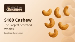 Among the regular whole cashew grades, S180 cashew kernels stand out as the largest and most visually impressive scorched cashew