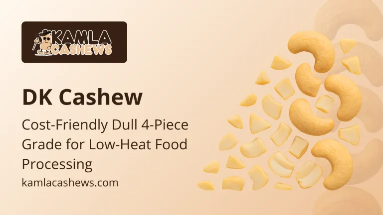 In large-scale food manufacturing, where cashews are used more for functionality than appearance, kernel grades like DK (Dull 4-Piece) offer serious value. These kernels may lack visual appeal, but they’re structurally reliable, rich in flavor, and ideal for use in processed foods, roasted mixes, and internal formulations where full cashew shape isn’t required.